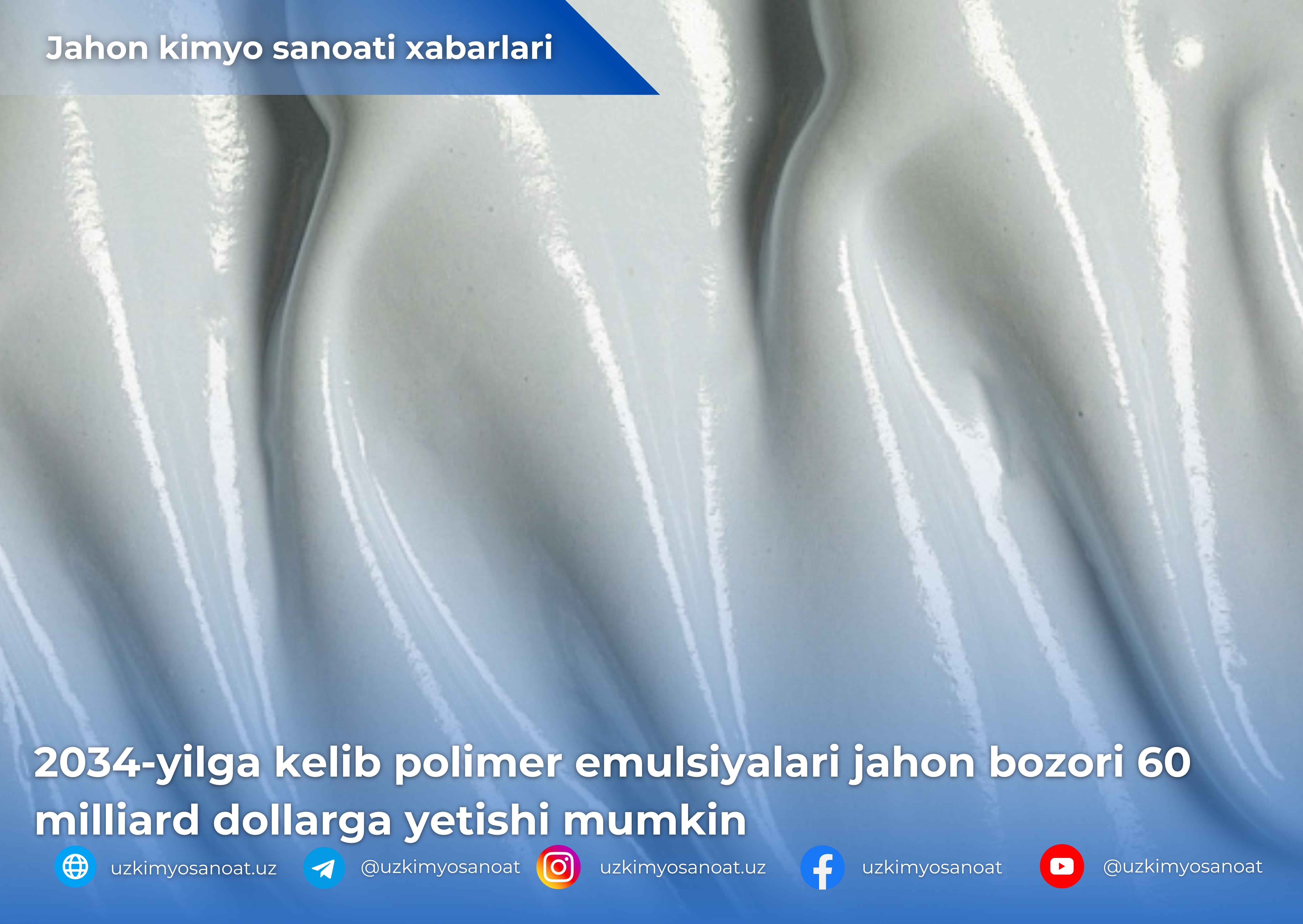 2034-yilga kelib polimer emulsiyalari jahon bozori 60 milliard dollarga yetishi mumkin