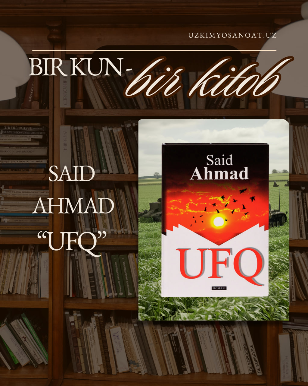 “O‘zkimyosanoat” AJ kitobxonlik madaniyatini keng targ‘ib qilish maqsadida “Bir kun — bir kitob” ruknini yo‘lga qo‘ydi. Ushbu rukn orqali jamiyatning elektron kutubxonasida jamlangan o‘zbek va jahon adabiyotining sara namunalarini mutolaa qilishingiz mumkin.
