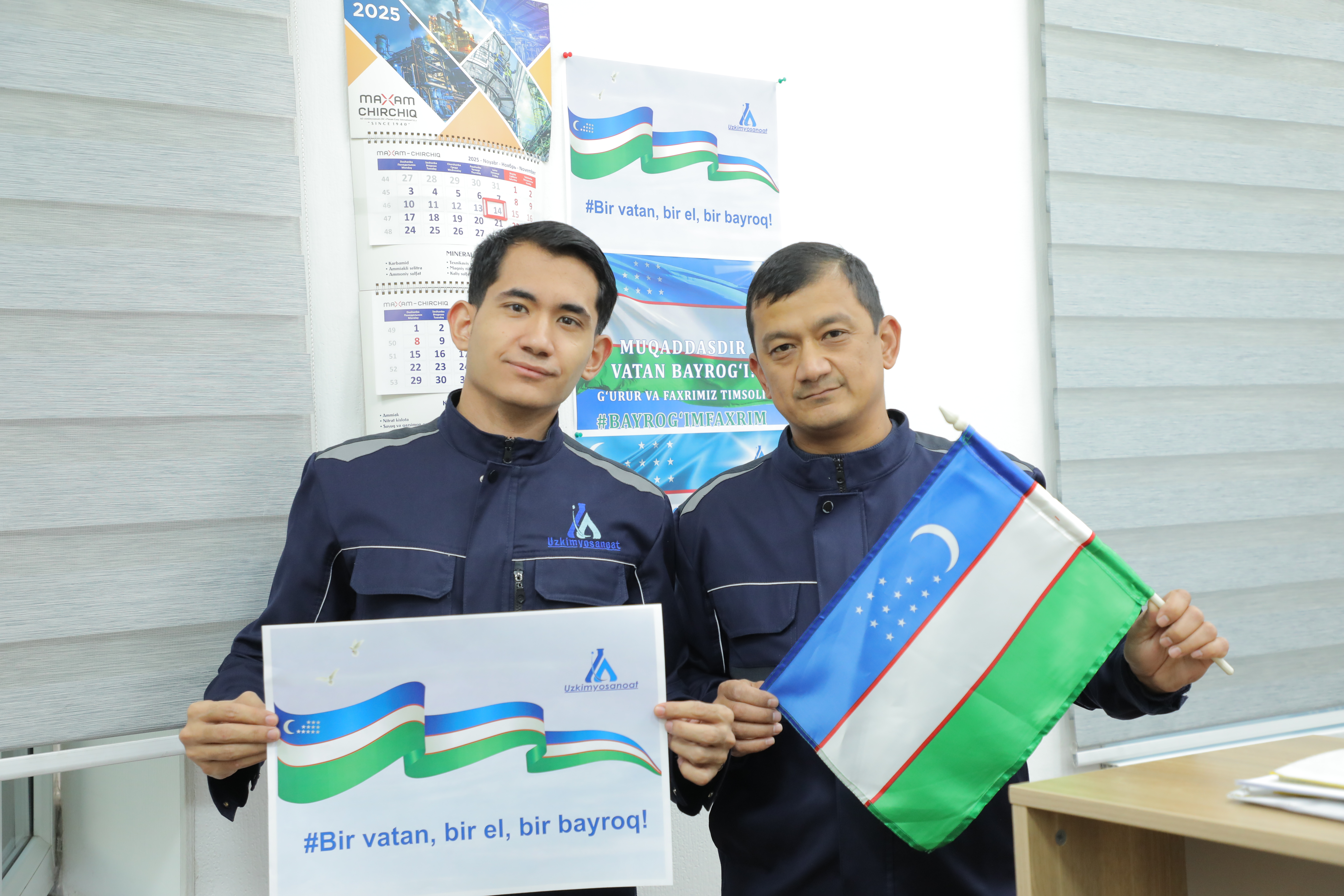 “Oʻzkimyosanoat” AJ xodimlari Oʻzbekiston Respublikasi Davlat bayrogʻi qabul qilinganligining 34 yilligi munosabati bilan oʻtkazilayotgan #Bir_vatan_bir_el_bir_bayroq chorlov tadbirlarida faol ishtirok etishdi.