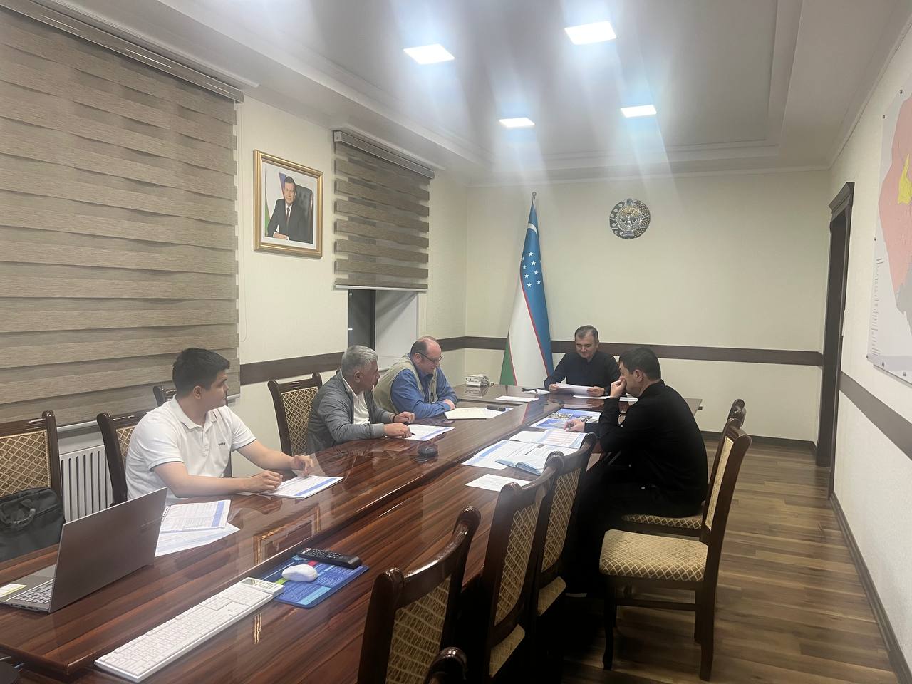 “O‘zkimyosanoat” AJ boshqaruv raisining birinchi o‘rinbosari Yevgeniy Korjikov boshchiligidagi ishchi guruhi xizmat safari doirasida Navoiy, Qashqadaryo va Surxondaryo viloyatlari hokimlari bilan uchrashdi.