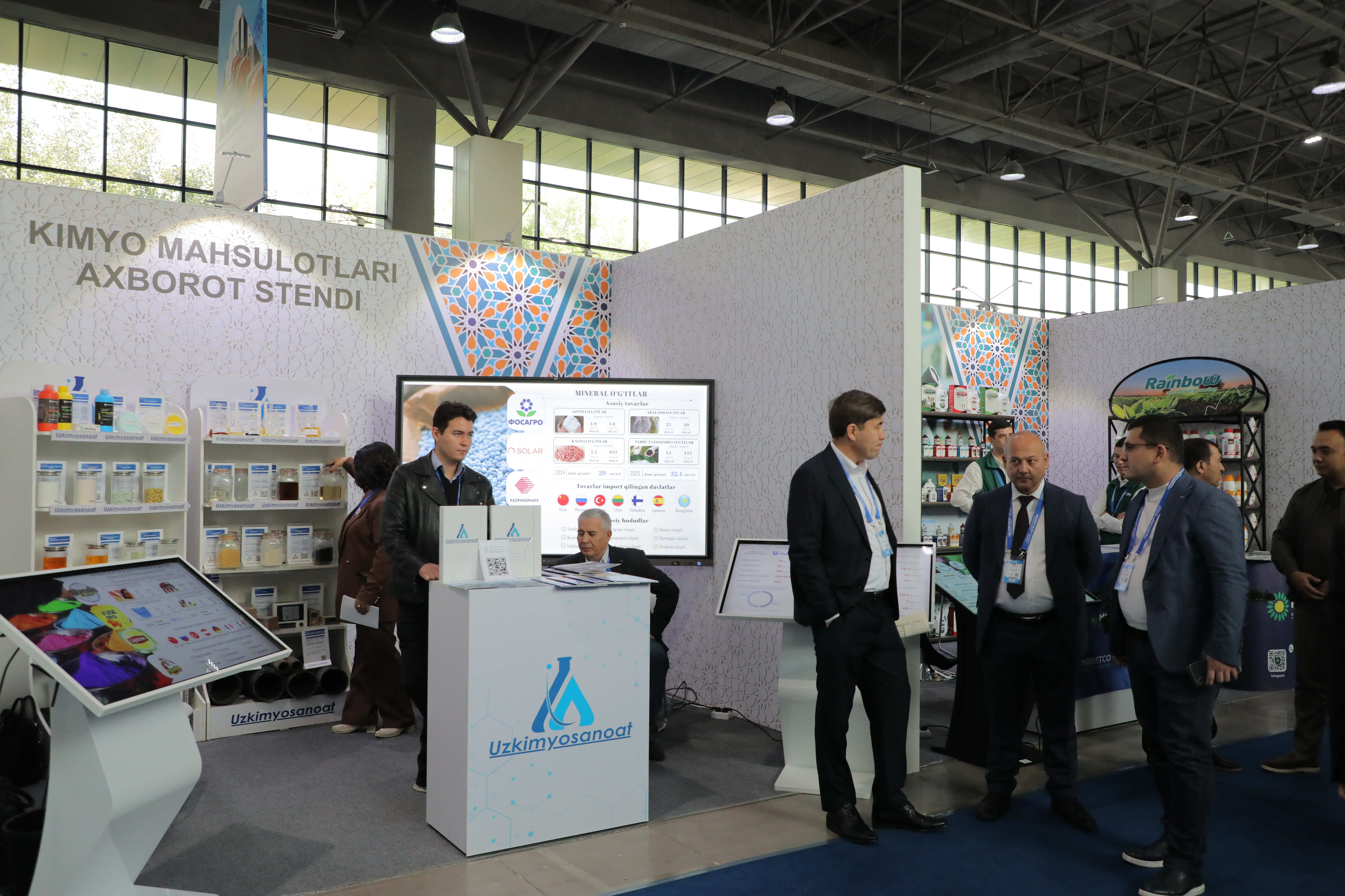 Shu bilan birga, respublikada joylashgan tadbirkorlik subyektlarining talab yuqori boʻlgan qiymati 280 mln dollardan ziyod 26 turdagi kimyoviy mahsulotlari ham koʻrgazmadan oʻrin olgan.