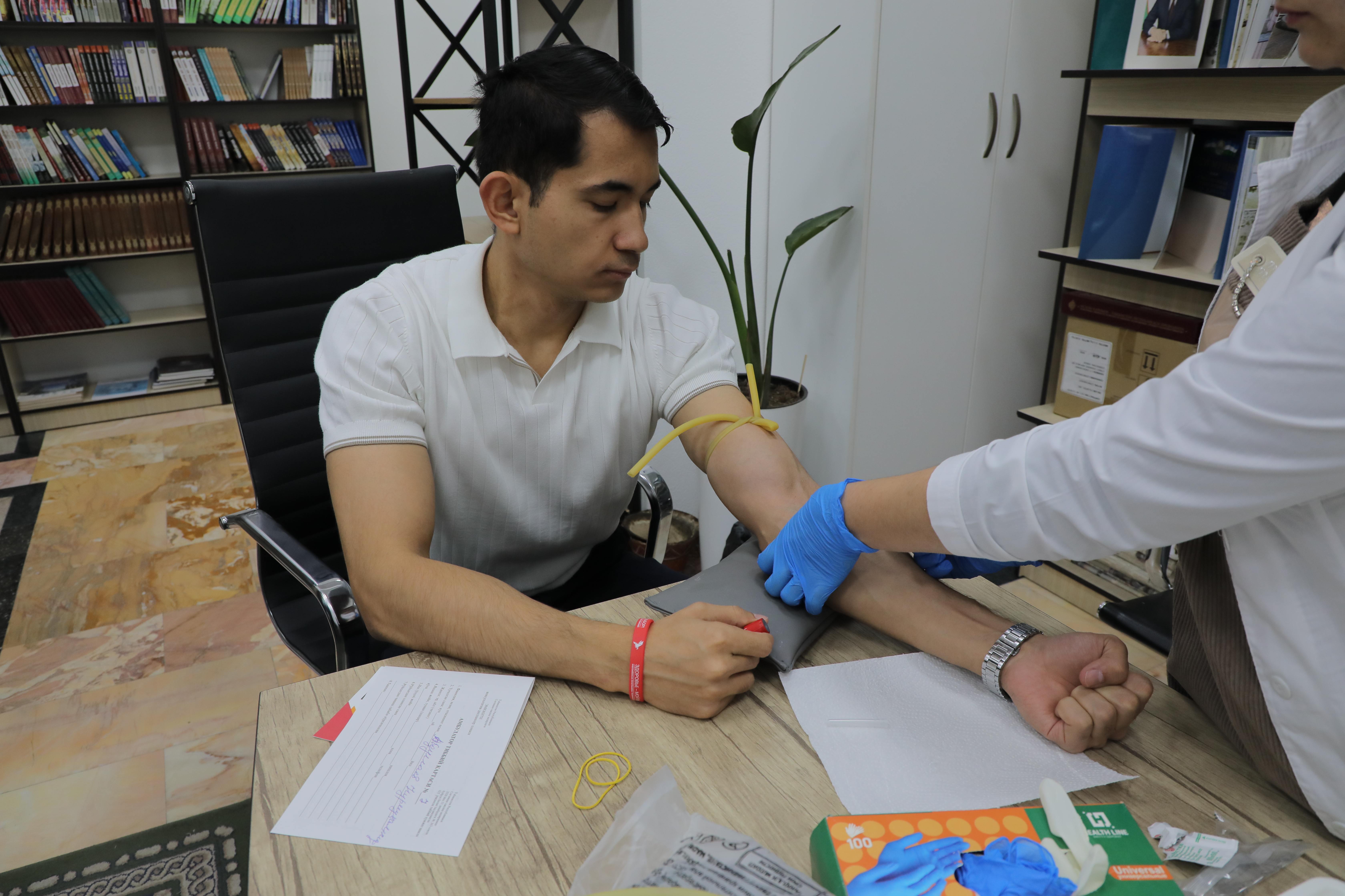 Profilaktik koʻrikka mobil klinika, tor yoʻnalishdagi malakali shifokorlar, shuningdek, laboratoriya mutaxassislari jalb etildi. Tibbiy tekshiruv davomida 150 nafar xodimlarning sogʻligʻi holati atroflicha oʻrganildi, ularning umumiy salomatlik koʻrsatkichlari baholandi, zarur tibbiy tavsiyalar berildi hamda individual profilaktik choralar toʻgʻrisida batafsil tushuntirish ishlari olib borildi. Mazkur tashabbus xodimlar sogʻligʻini mustahkamlash, yuqumli kasalliklarni erta aniqlash va sogʻlom turmush tarzini targʻib etishga qaratilgan.