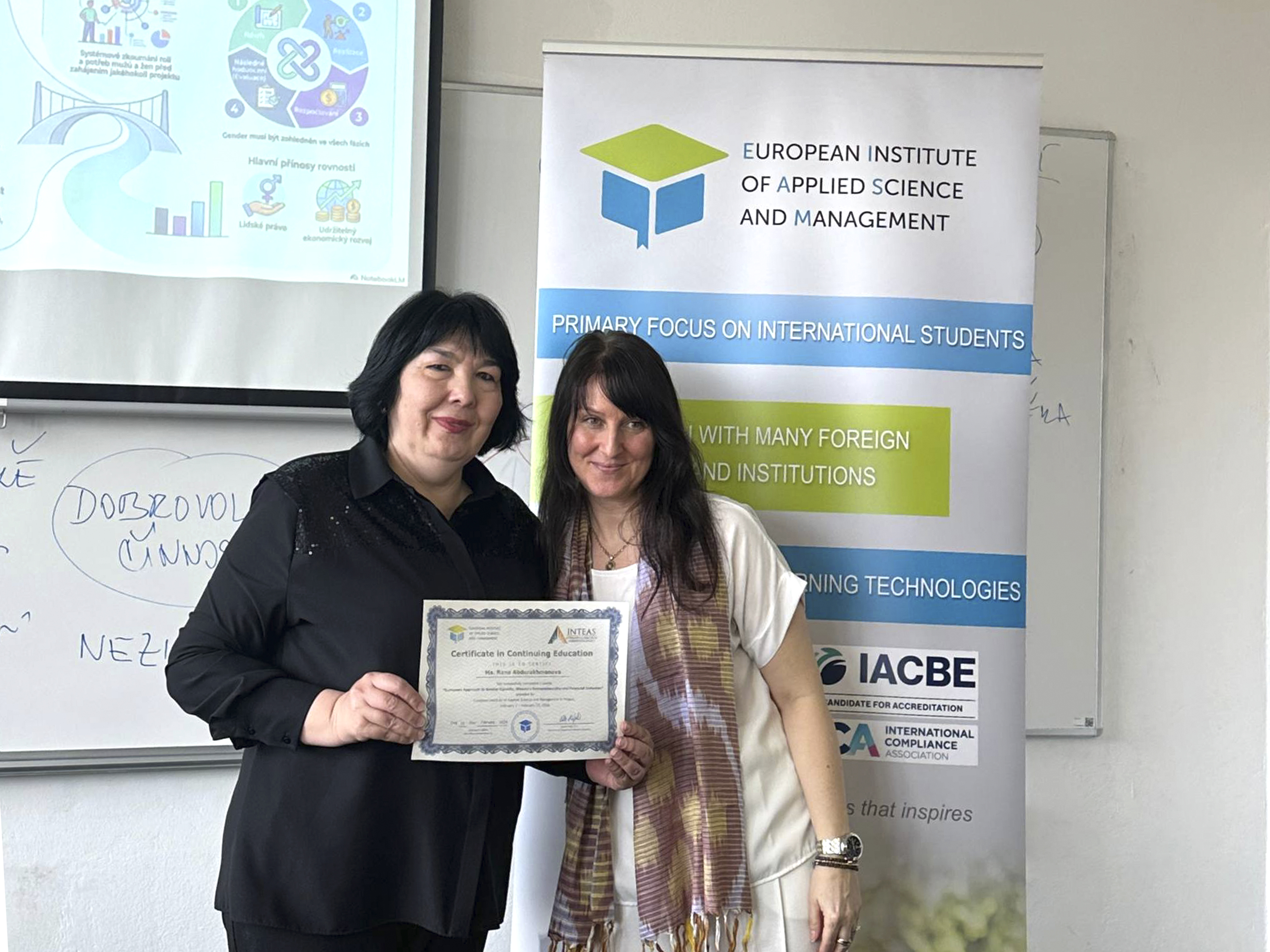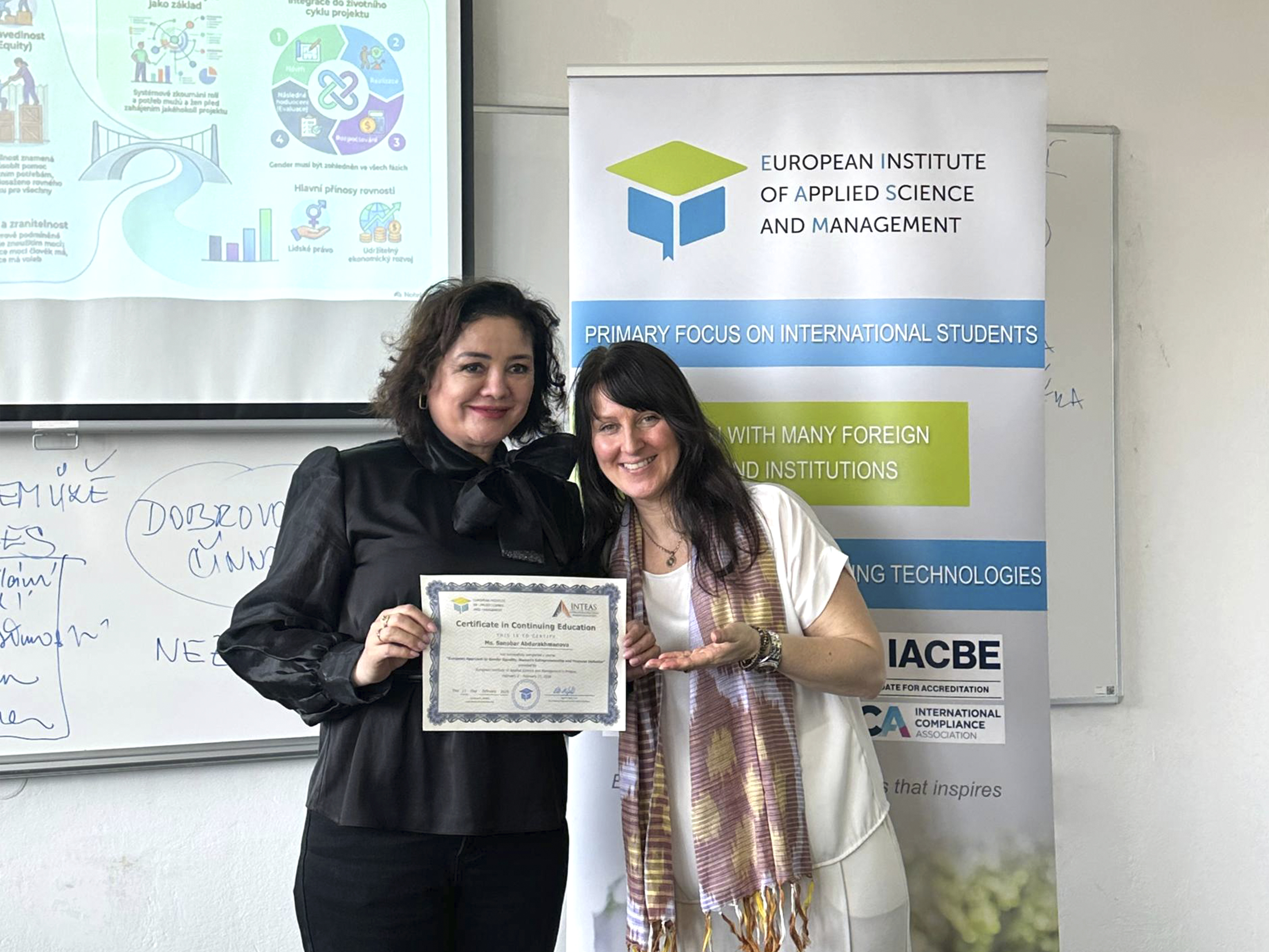 “O‘zkimyosanoat“ AJ boshqaruvi raisining ma’naviyat va davlat tili masalalari bo‘yicha maslahatchisi Sanobar Abduraxmanova hamda jamiyatning Iqtisodiyot va biznesni rejalashtirish departamenti boshlig‘i Ra’no Abduraxmanovalar Chexiyaning Praga shahrida «Gender tengligi, ayollar tadbirkorligi va moliyaviy inklyuziyaga Yevropa yondashuvi» mavzusidagi o‘quv-amaliy seminarida ishtirok etishdi.