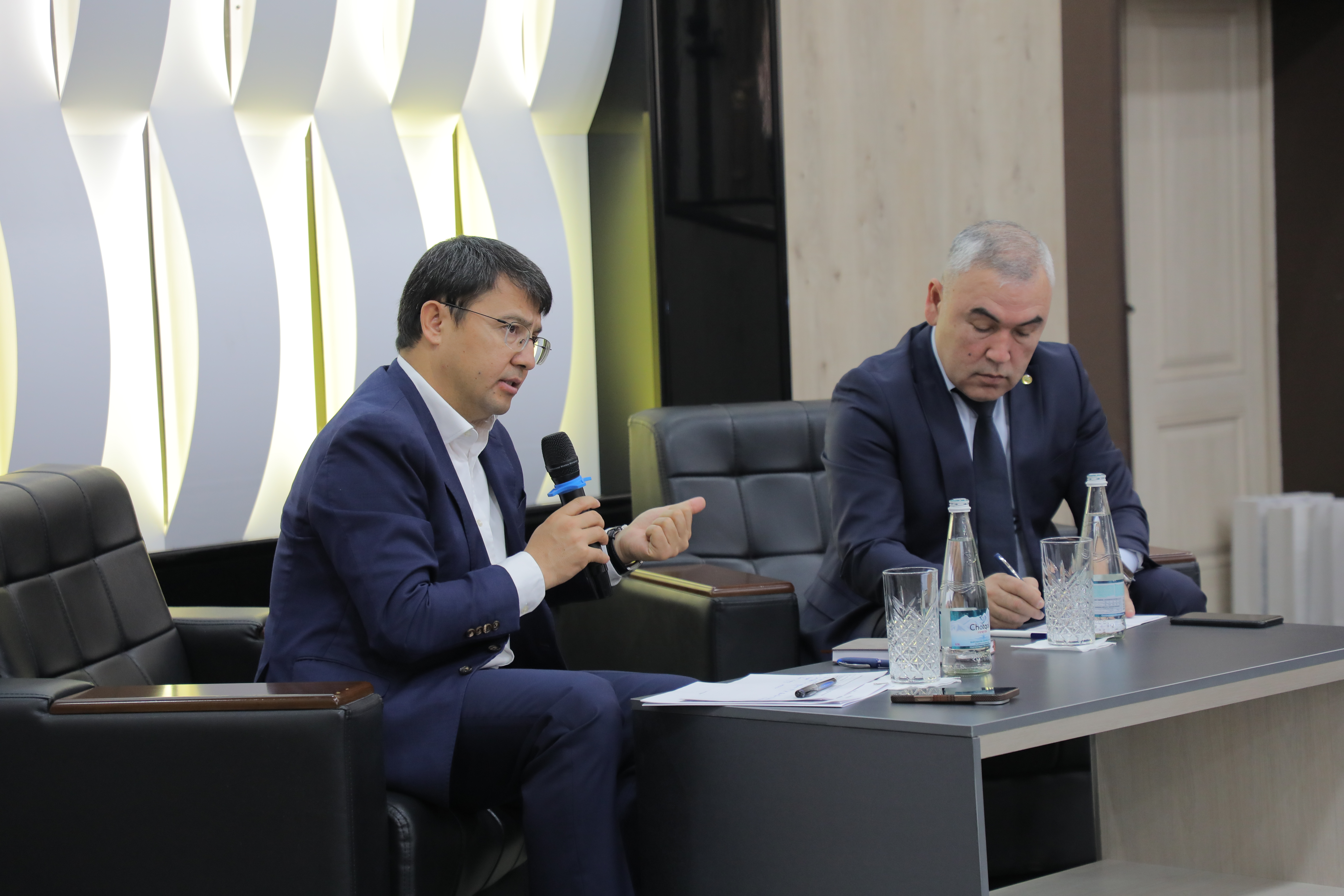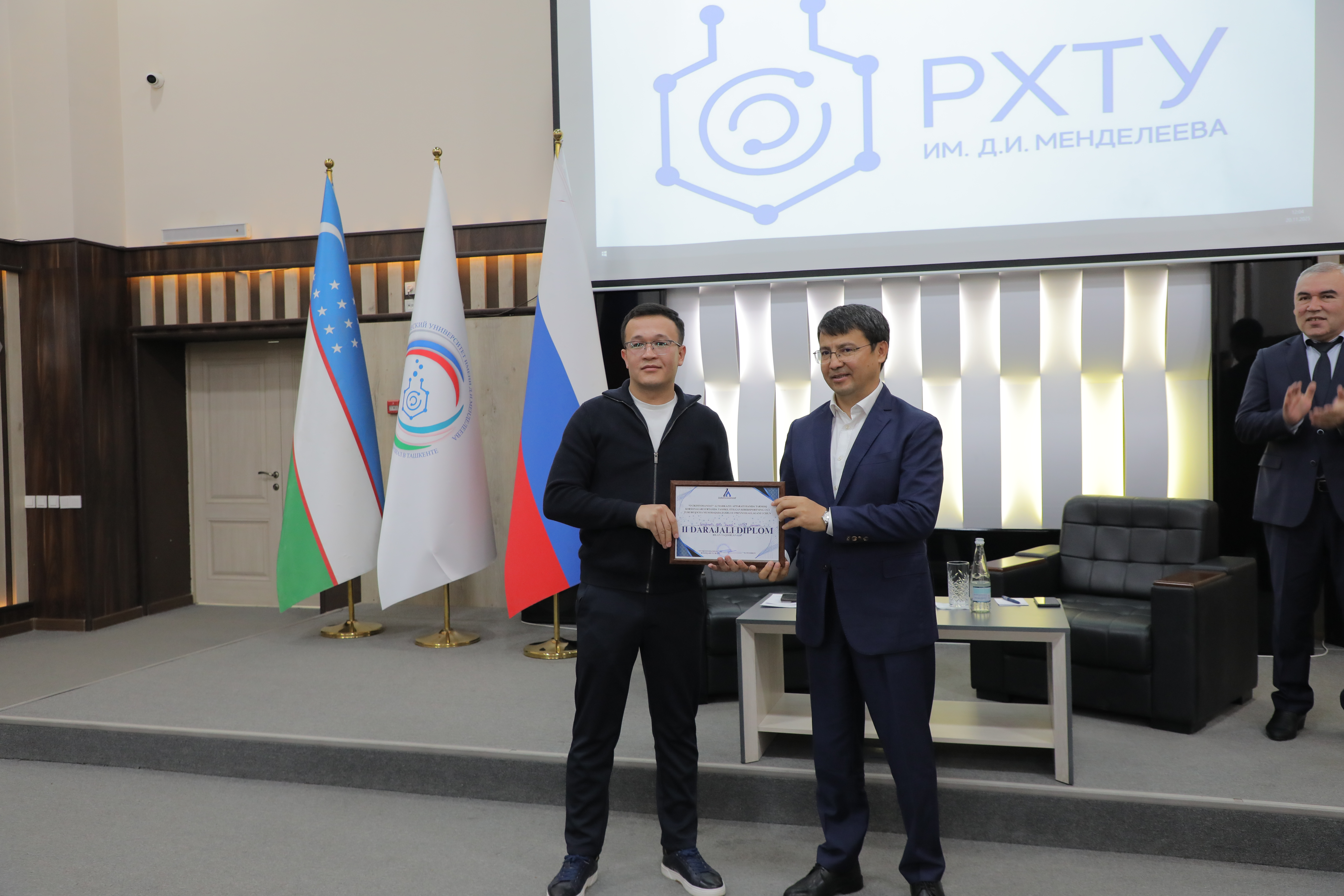 Очередная встреча председателя правления АО «Узкимёсаноат» Одила Темирова прошла со студентами ташкентского филиала РХТУ имени Менделеева. В мероприятии приняли участие члены правления АО «Узкимёсаноат», руководство и преподаватели ташкентского филиала РХТУ имени Менделеева, а также около 200 студентов.