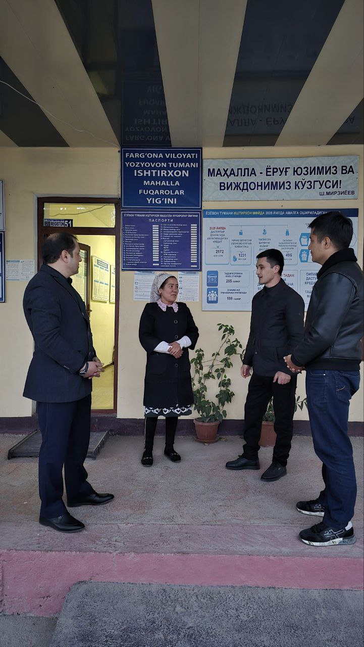 Ўзбекистон Республикаси Президентининг 2025 йил 19 сентябрдаги ПФ–173-сон “Аҳоли ва қишлоқ хўжалигини рўйхатга олиш тадбирини ўтказиш тўғрисида”ги Фармони ижросини таъминлаш мақсадида “Ўзкимёсаноат” АЖ ишчи гуруҳи бириктирилган Фарғона вилояти Ёзёвон туманида ташкил этилган аҳоли ва қишлоқ хўжалигини рўйхатга олиш бўйича туман штаби фаолиятини ўрганиб, штаб масъуллари билан учрашув ўтказди ҳамда амалга ошириладиган режа ва вазифалар муҳокама қилинди.