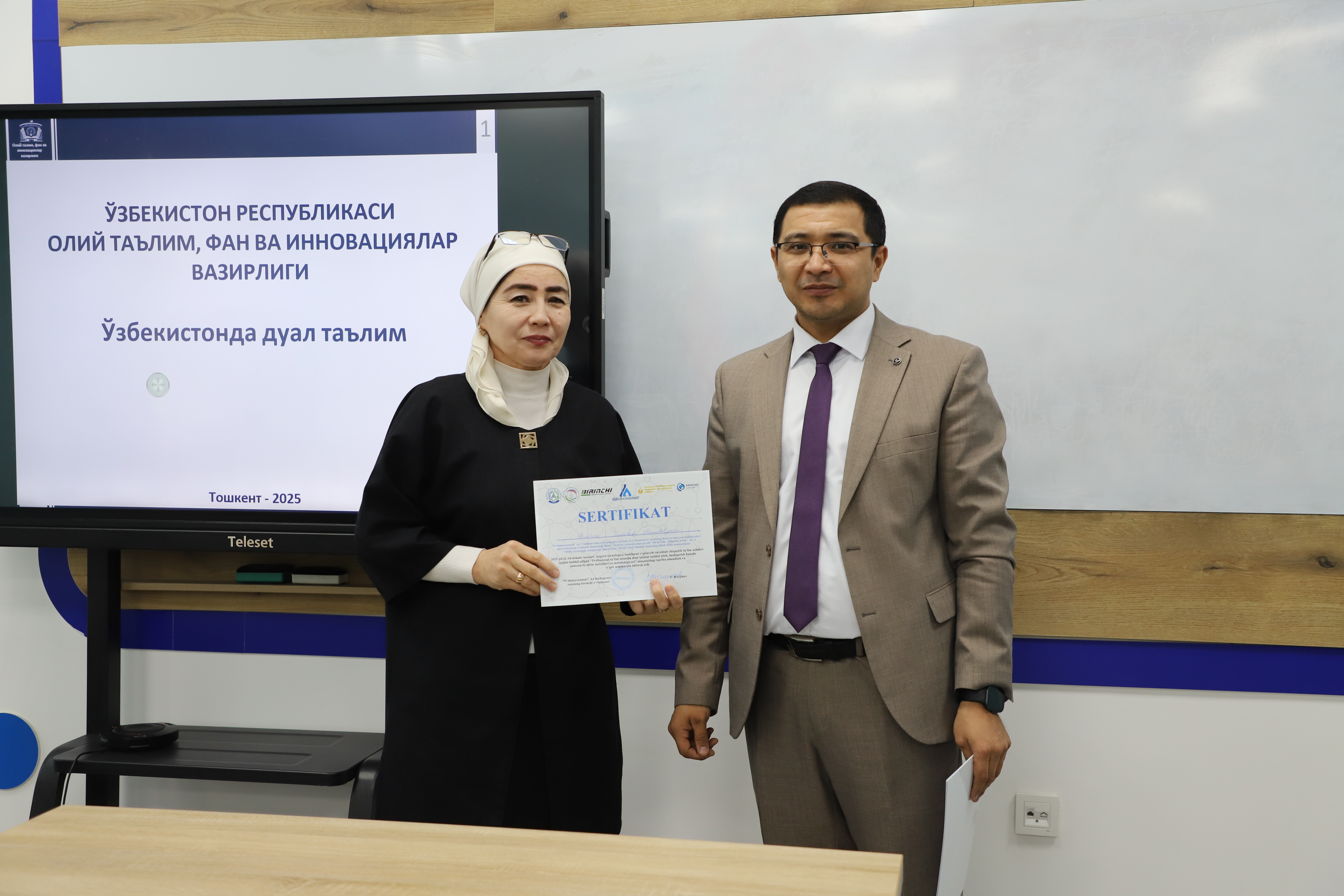 “Профессионал таълим тизимида дуал таълимни ташкил этиш, бошқариш ҳамда замонавий таълим методлари ва методологияси” мавзусида 3 кунлик ўқув семинари якунланди.