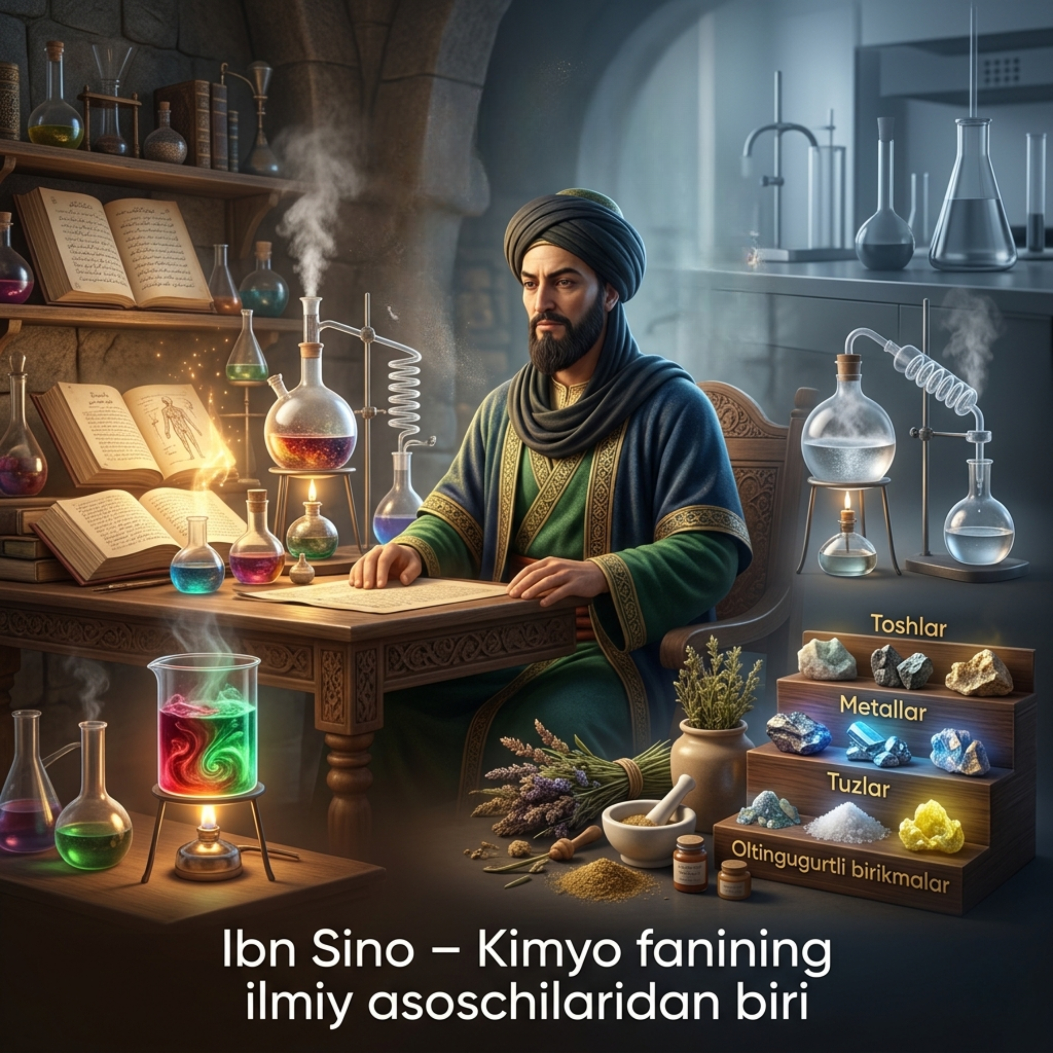 •Доришунослик кимёси: Ибн Сино "Тиб қонунлари" асарида кимёвий моддаларнинг шифобахш хусусиятларини батафсил баён этган. У минералларни тиббиётда қўллашнинг ўзига хос йўлларини кўрсатган.